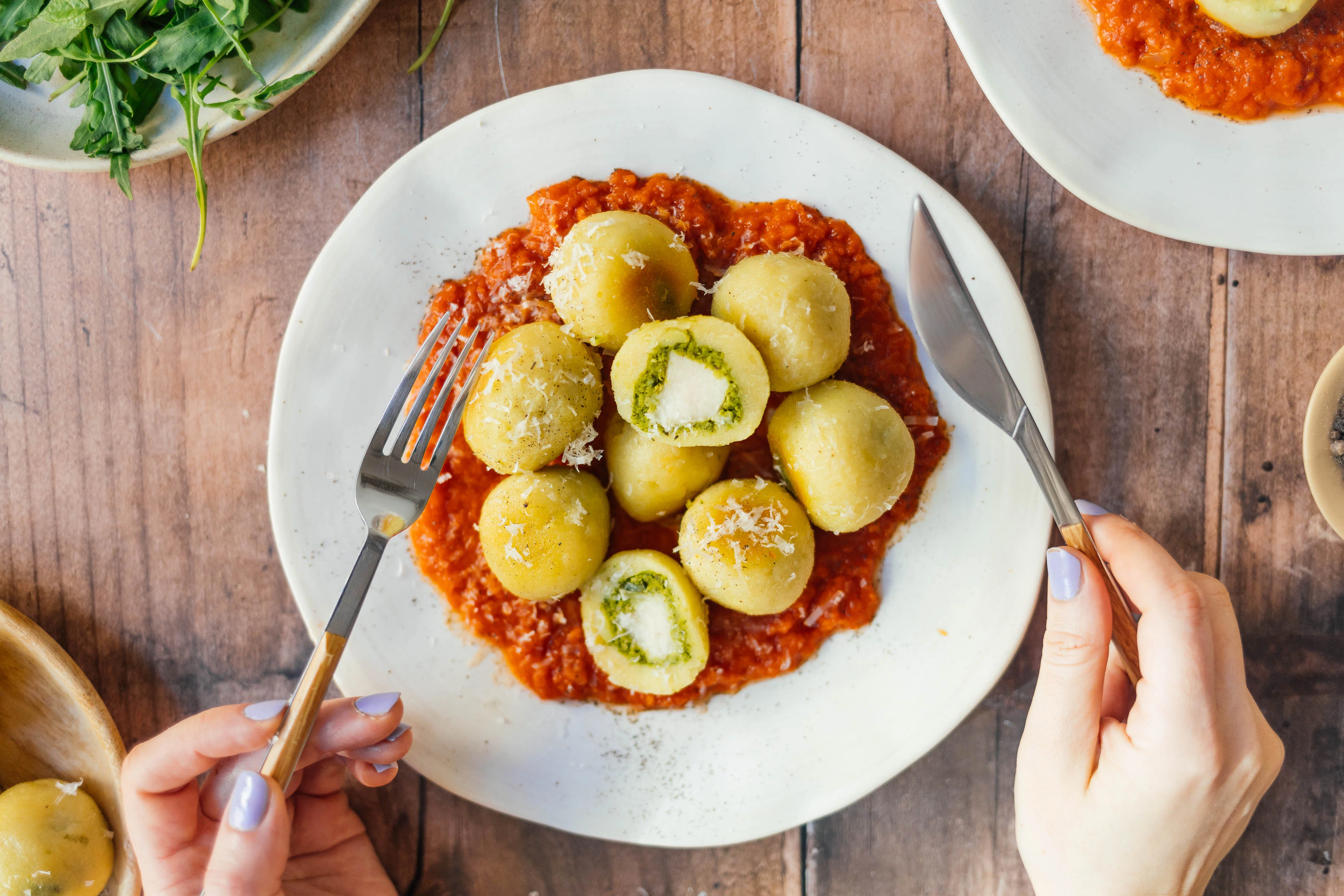 Gefüllte Gnocchi mit Spinat und veganem Mozzarella