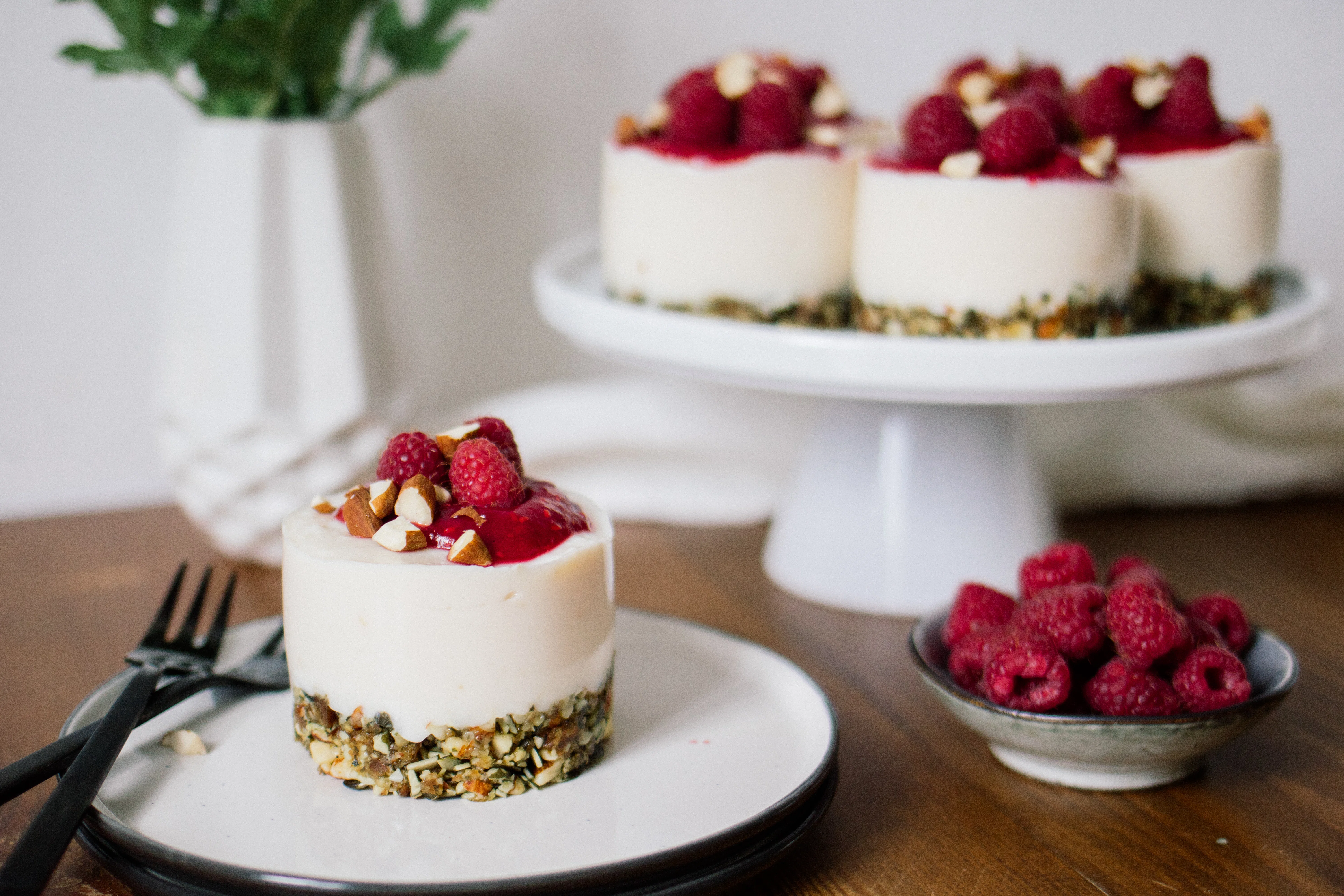 Vegane Himbeer-Joghurt-Törtchen ohne Backen