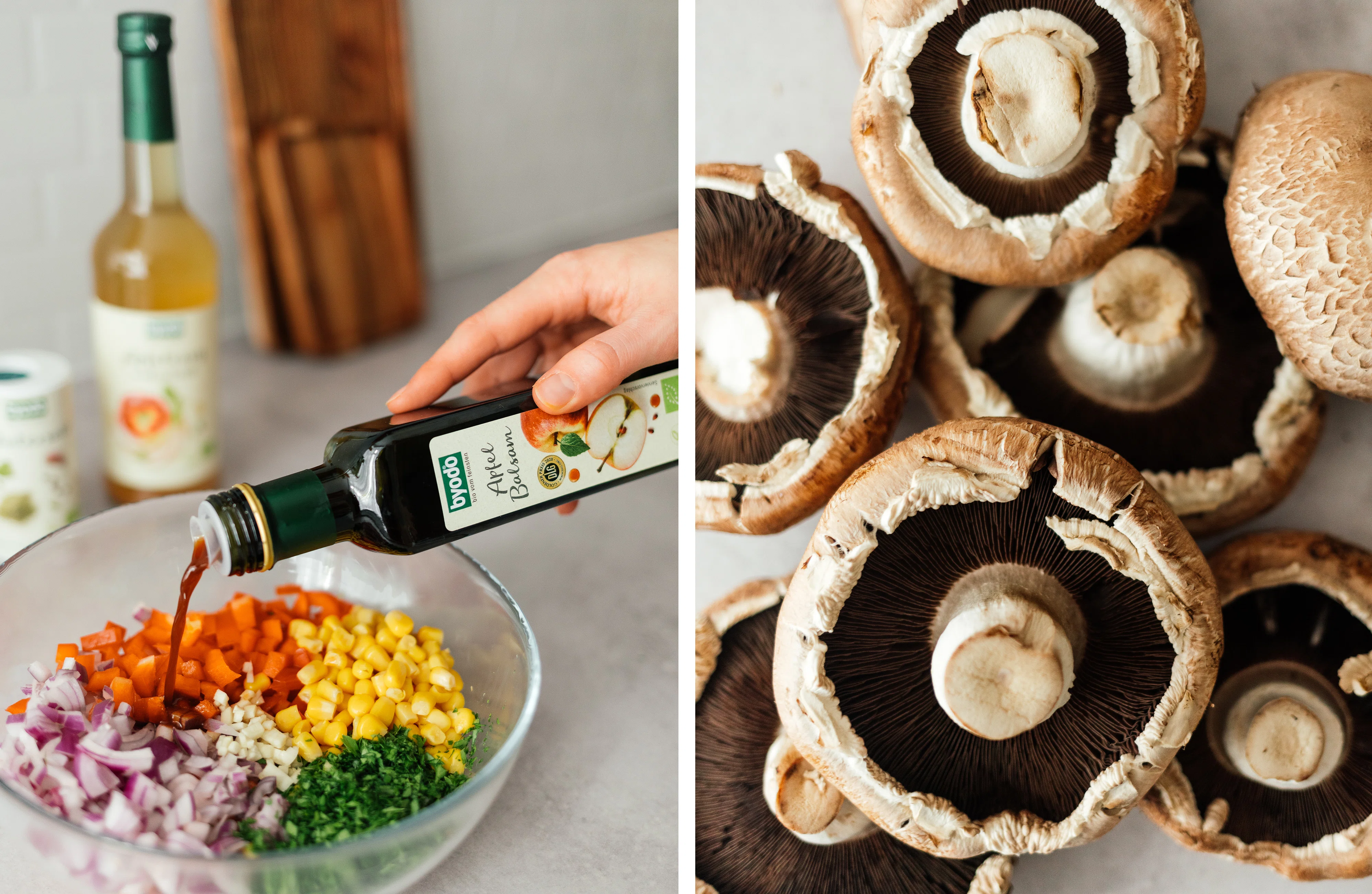But back to the mushrooms. If you don't want to grill them, you can, of course, prepare them in the oven. In order to cook them faster and thoroughly, we recommend to sauté the mushrooms on both sides in a frying pan before filling them. Of course, you can experiment with the filling and adjust the recipe to your taste. To us, however, it tasted delicious! In addition to rice, all kinds of salads or potatoes would also be a good side dish.