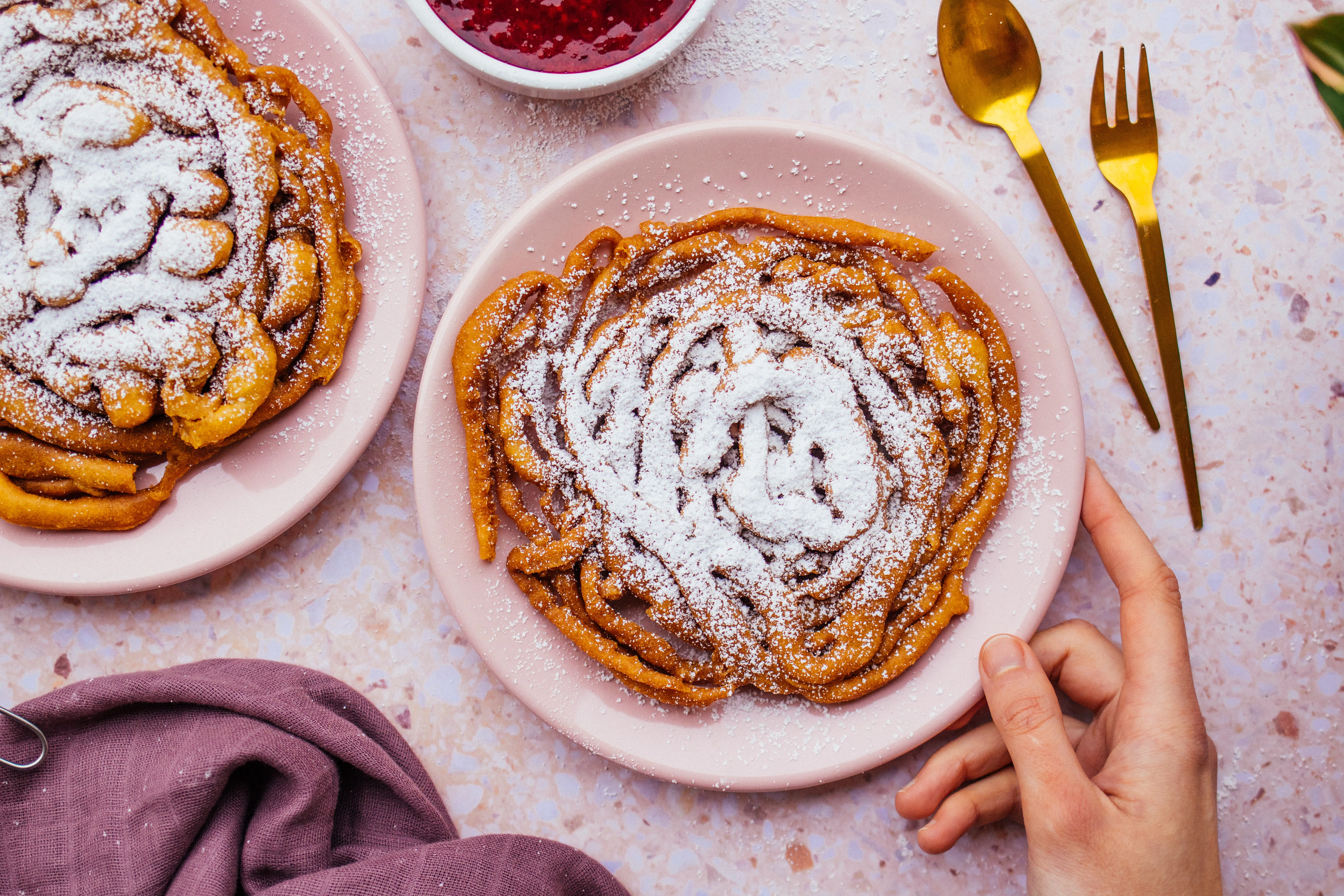It's carnival season! Usually, we'd prepare ourselves to hop into our costumes, throw some confetti, and watch lots and lots of people in front of colorful carnival parades. This year, however, we'll have to pass on any get-togethers due to Corona, so we'll celebrate our own tiny carnival at home. We'll make the best of it and today, we show you how to bring the feeling of carnival home. Food, of course, is the best (and easiest) way to do so! If you already have jelly doughnuts and black and white cookies on your list, here's another essential recipe for your stay-at-home carnival buffet. We're talking about funnel cakes!